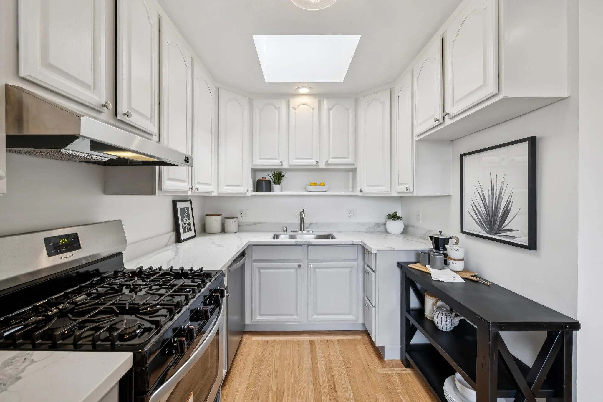 Also on the main level is the kitchen with stainless steel appliances, gas cooktop, skylight and breakfast nook. The kitchen connects directly with the dining room, with ample space and beautiful city / bay views, providing the perfect space for everyday dining and entertaining.